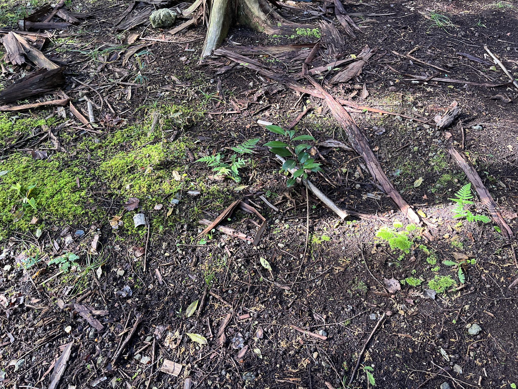 このゆるりとした森の変化は、一気にする間伐との大きな違いのひとつだと思います。森の樹々と同じように変化はゆるやかでも、光が差し込んだ地面の下では確実に変化が起こっているでしょうね。