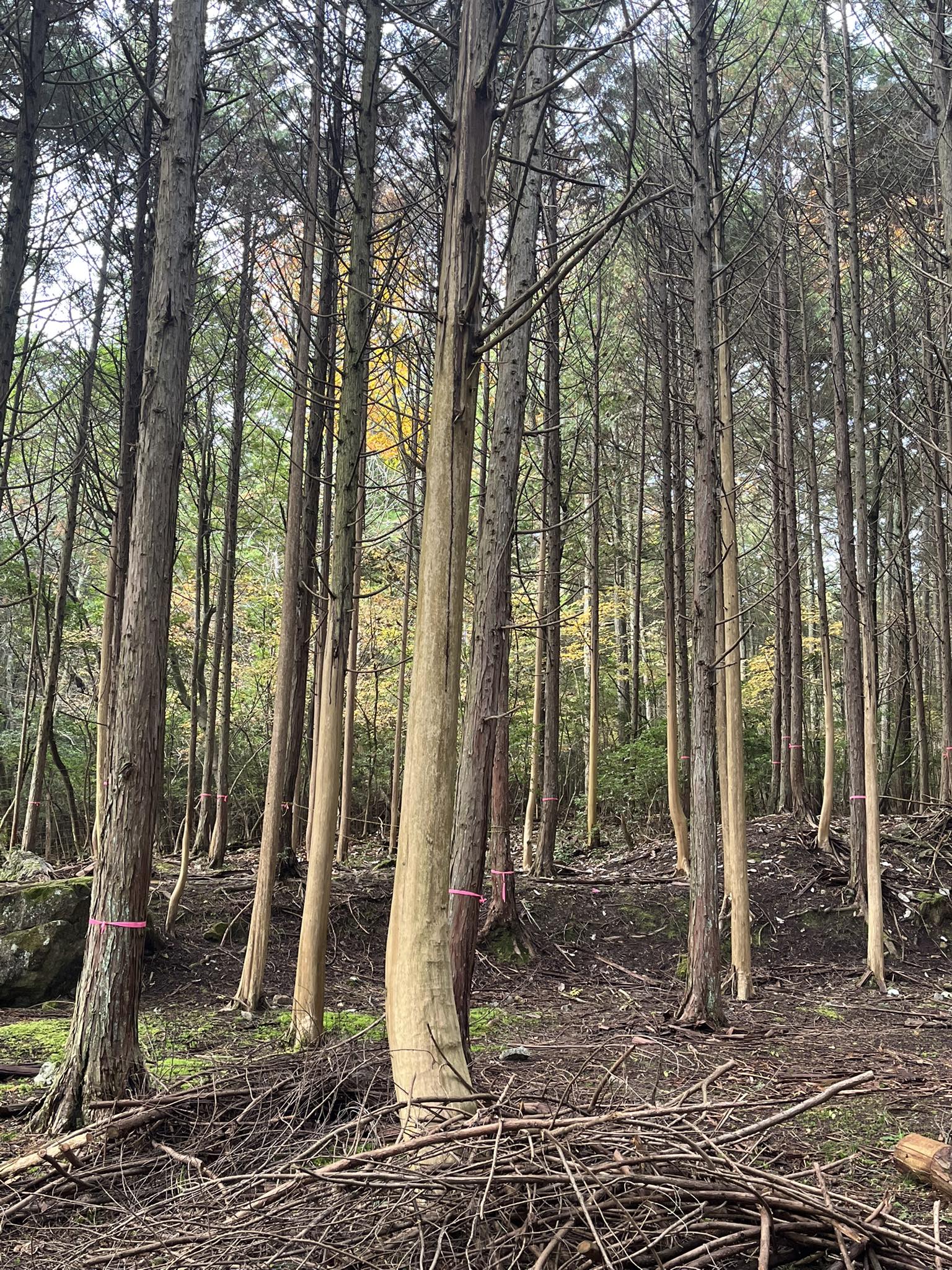 今年の春に皮むき間伐を共催した「青のたすき」さんが、二年前に檜の皮むき間伐をした「はじまりの森」。こちらで木の伐採イベントがあり参加してきました
