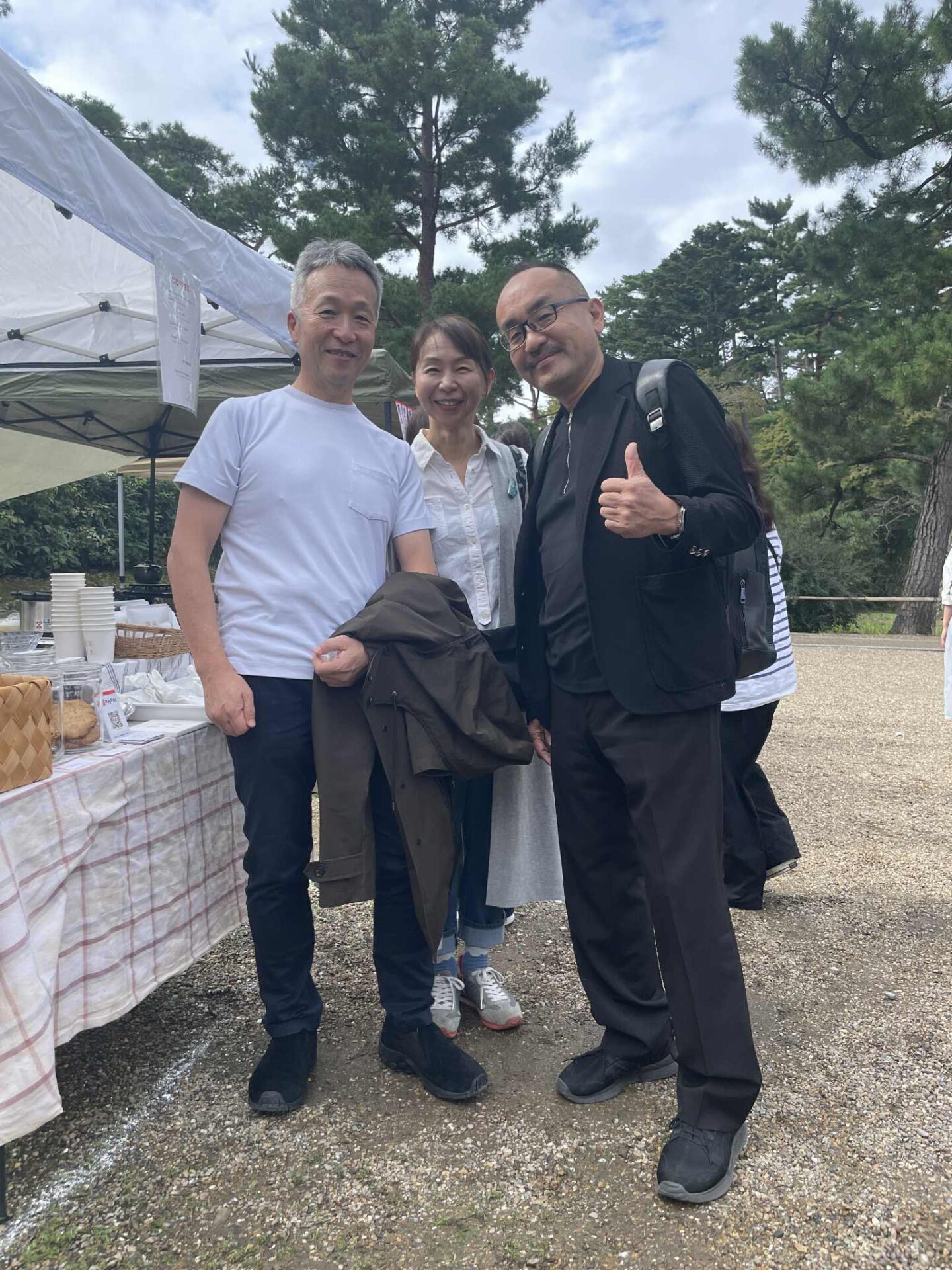 トークセッションの前にボンボンマルシェで美味しいものを楽しんでいたら、コーヒーを飲むヤノベさんを発見。この後、お話をお聞きすることに。