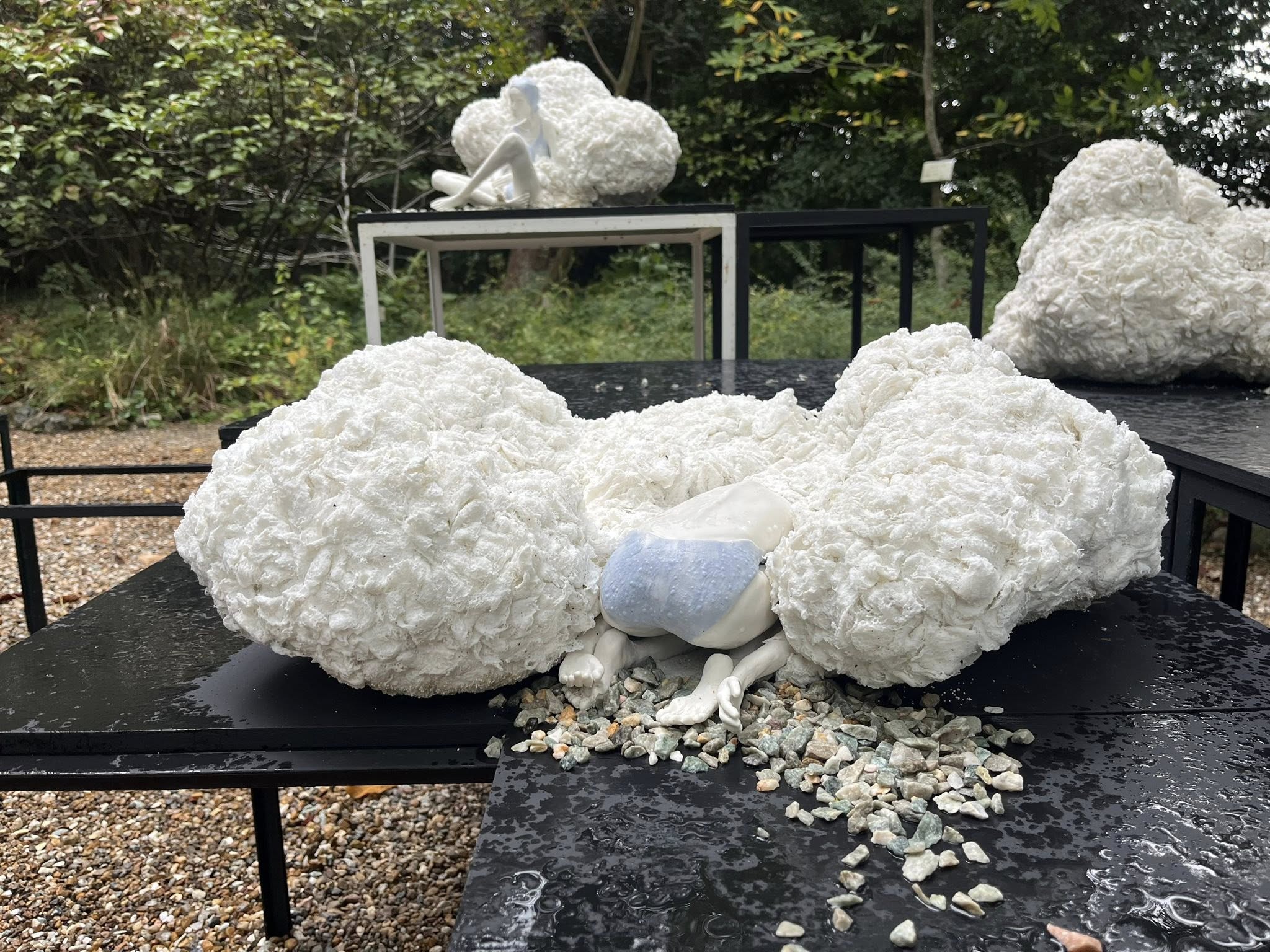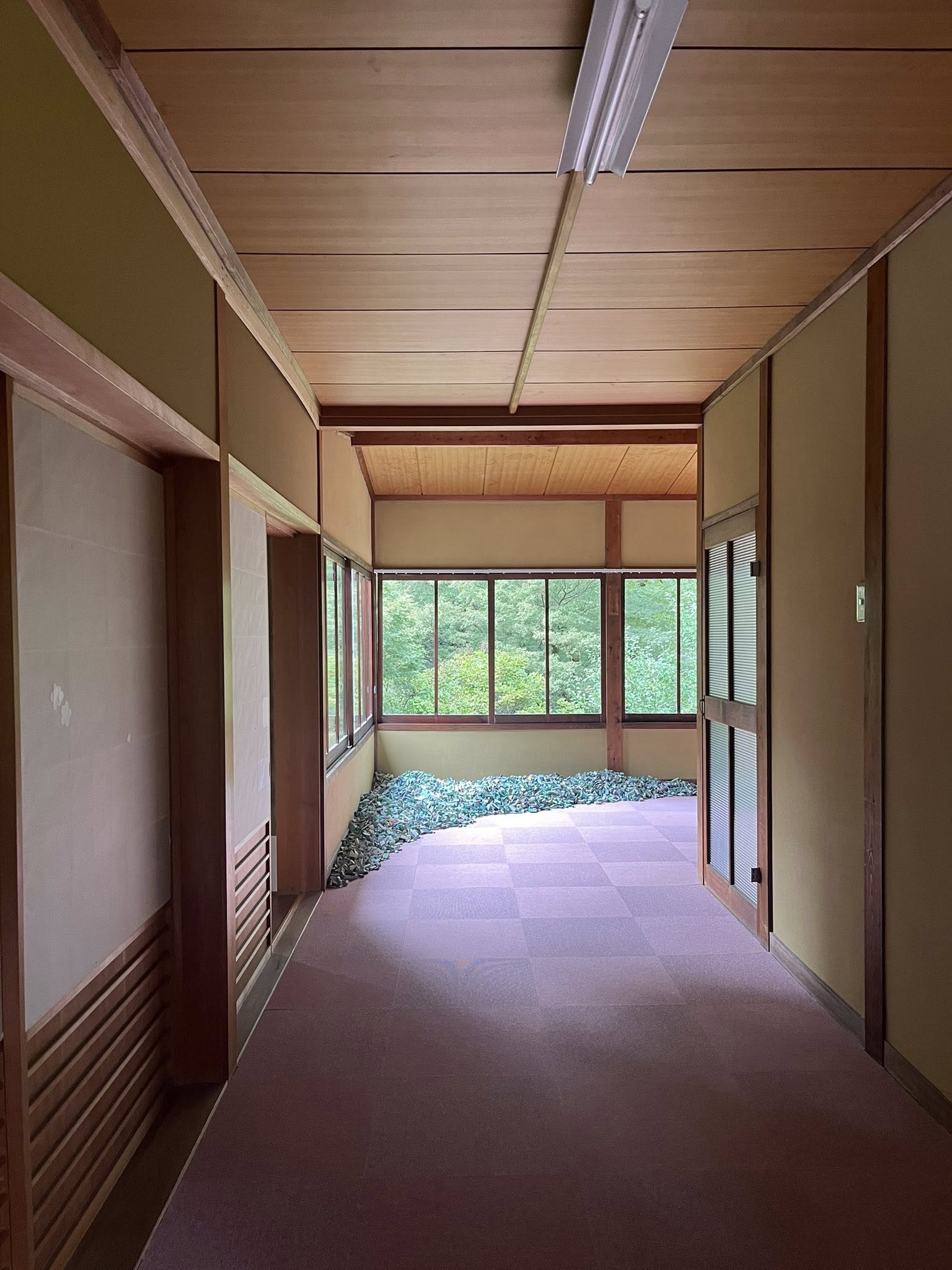 展示作品は、後日、福岡からの素敵な女性と観に行くことになりました。時々雨がパラつくしっとり静かな亀山城跡(大本本部)で、隅々まで手入れの行き届いたお庭や屋内に展示された作品をゆっくり鑑賞しました。