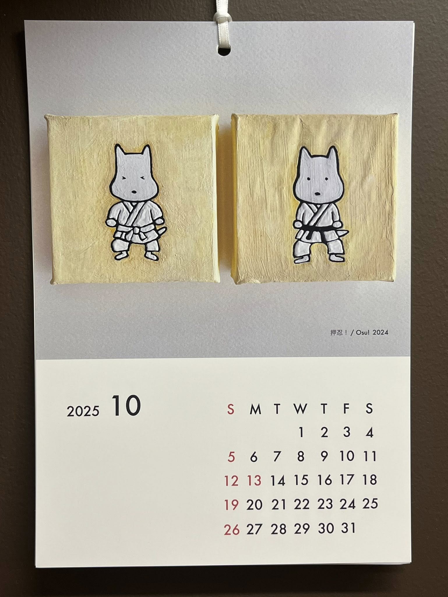 写真は、今年のカレンダー、10月の押忍!/ Osu! と展覧会のDM