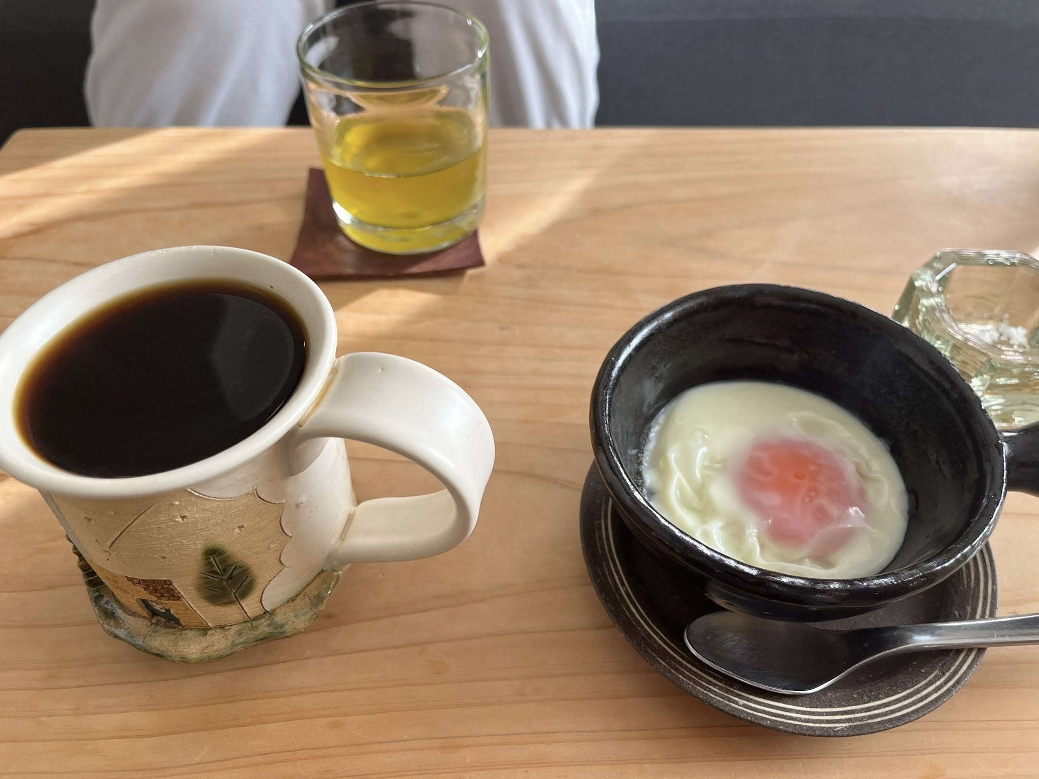 翌朝は、美味しいモーニングコーヒー&エッグベーカーの卵という幸せな1日のスタートでした。エッグベーカーは(写真右の取手のある器)、そのままコンロにのせて焼くととてもいい具合に目玉焼きができるそうなのです。(蓋付き)