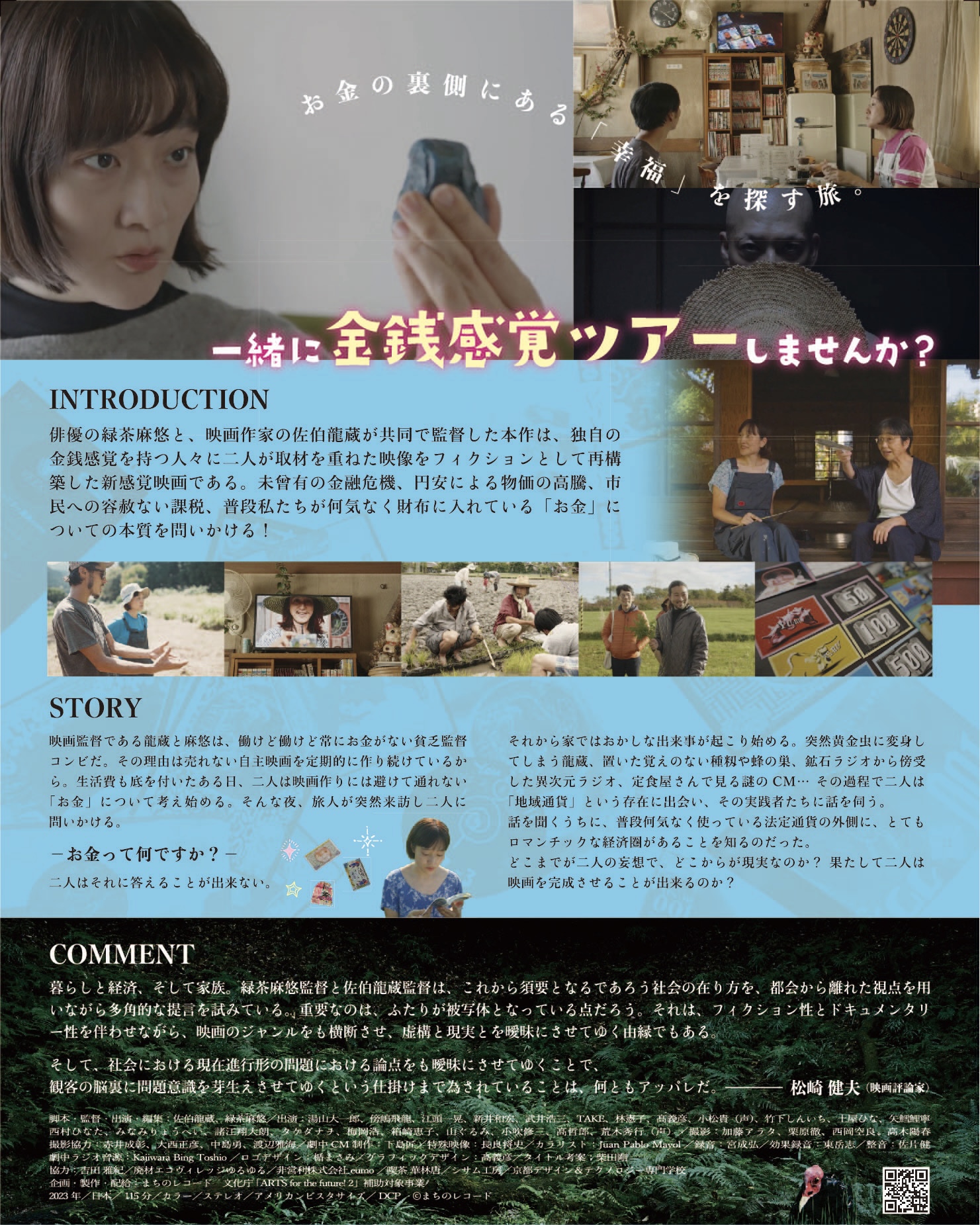 俳優の緑茶麻悠と映画作家の佐伯龍蔵が共同で監督した本作は、二人が独自の金銭感覚を持つ人々に取材を重ね、フィクションとして新たに再構築する誰も見たことがなかった映画となった。未曾有の金融危機、円安による物価の高騰、市民への容赦ない課税、普段私たちが財布に入れているお金についての本質を問いかける!