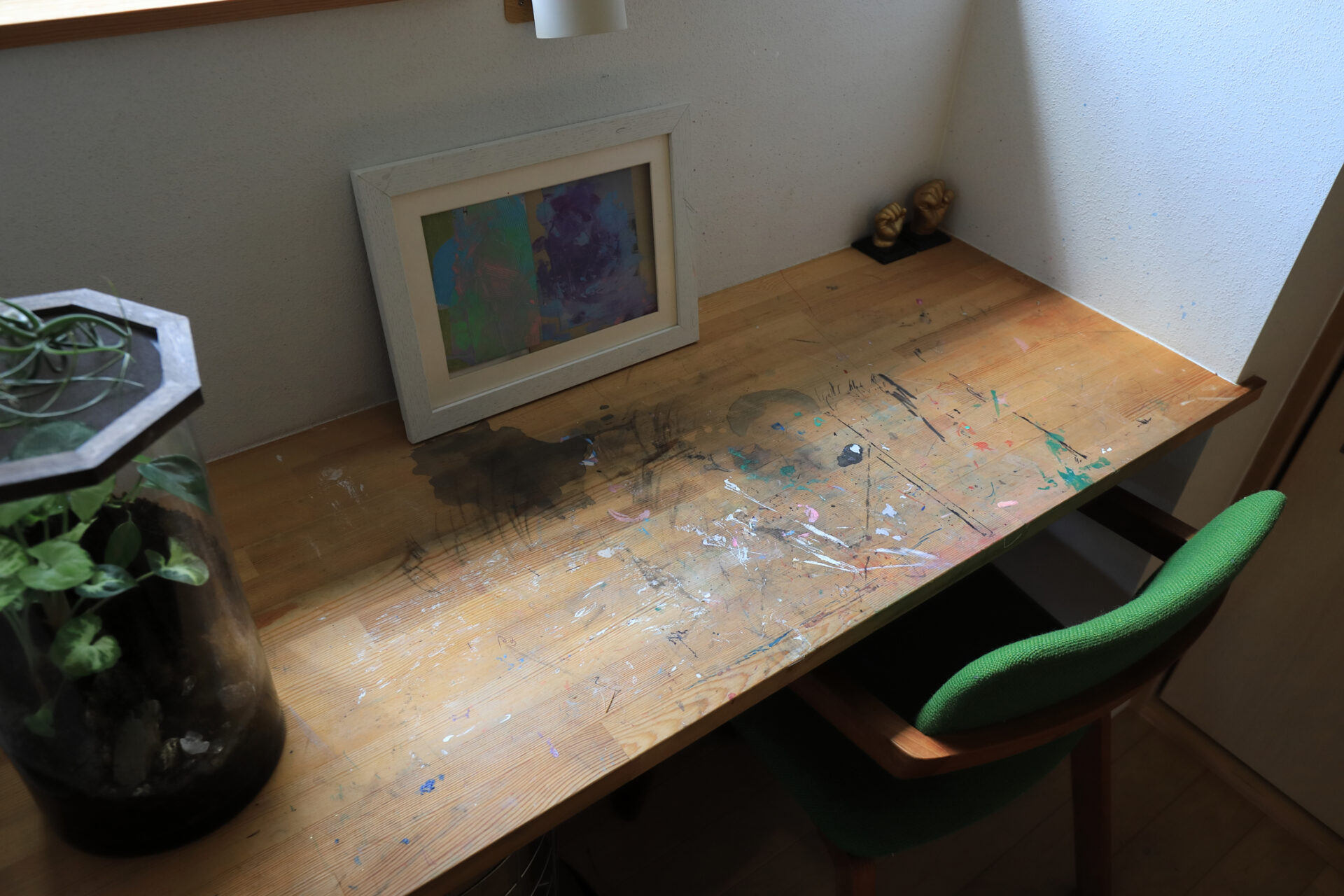 建物東側の屋外空間(デッキ)は、内部と外部をつなぐ中間領域であると同時に、将来的なアトリエ増築を見据えた動線の一部としても構想しています。