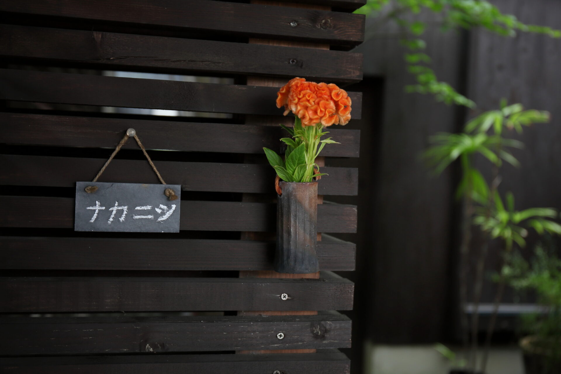 道路に面したガレージから黒煉瓦(磚セン)を敷き詰めた庭のヤマボウシが見えます。引戸をあけたところにある庭は、外部と内部をゆるやかにつなぎます。広くはありませんが、この中間的な庭スペースはこの家のゆたかさを感じるスペースです。