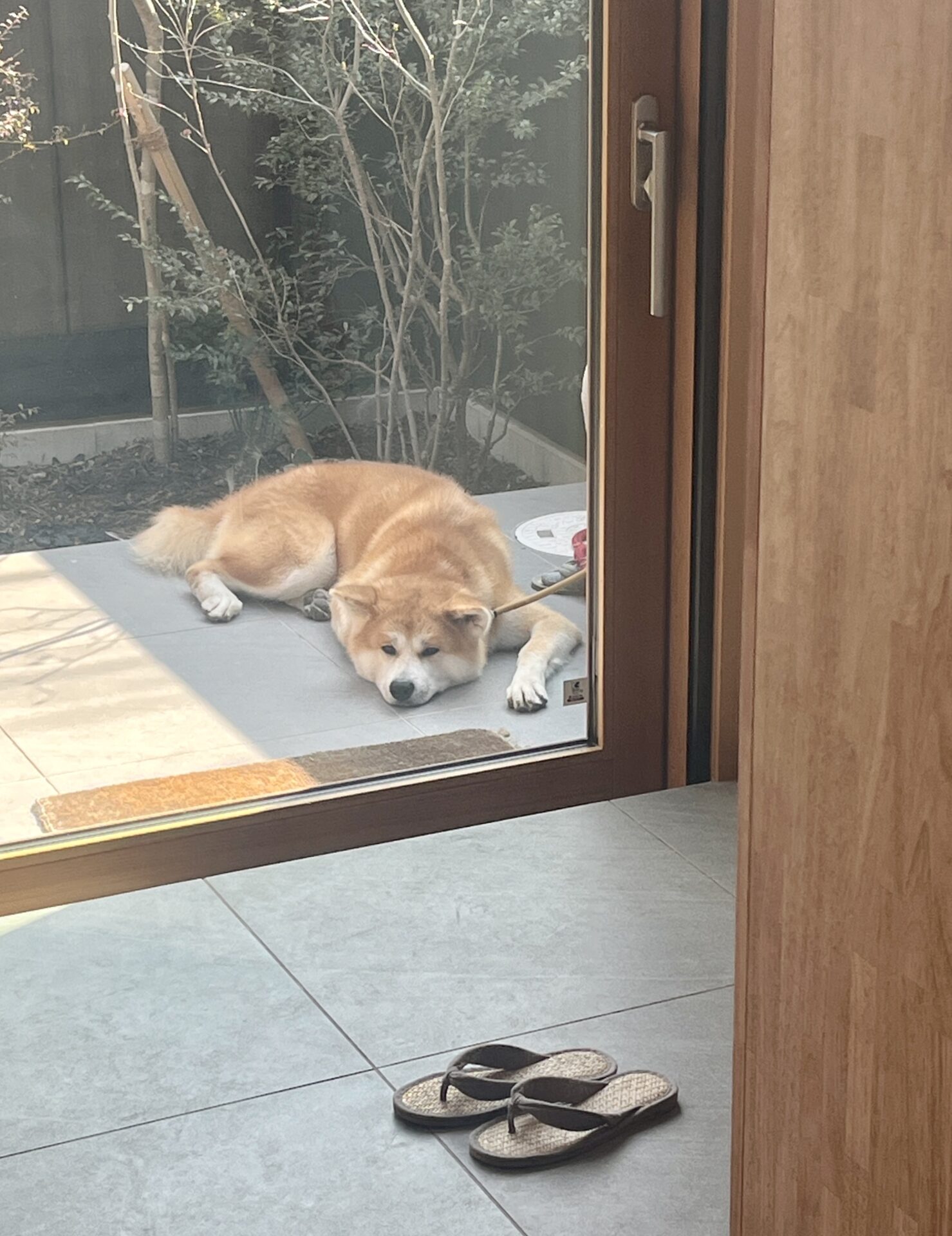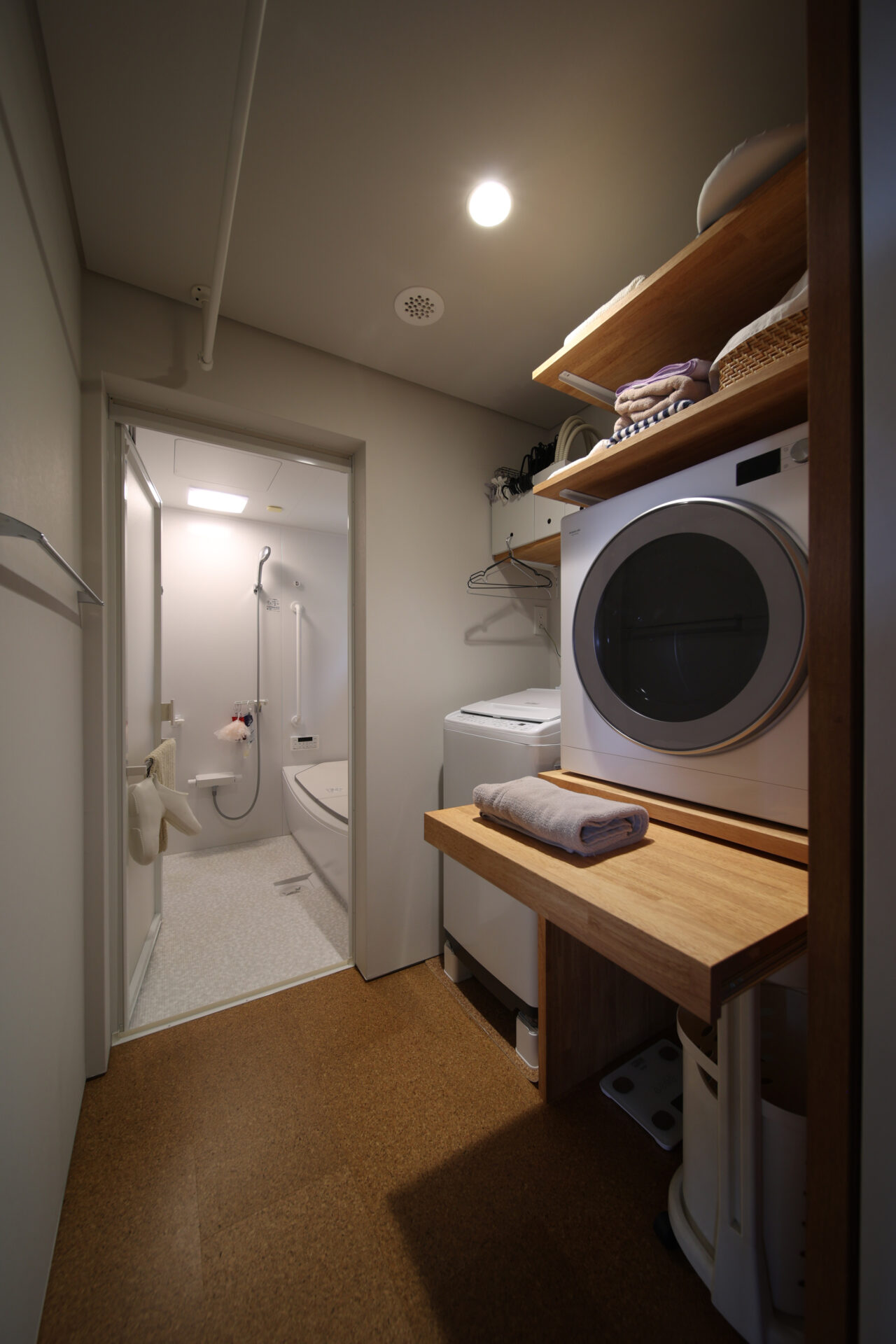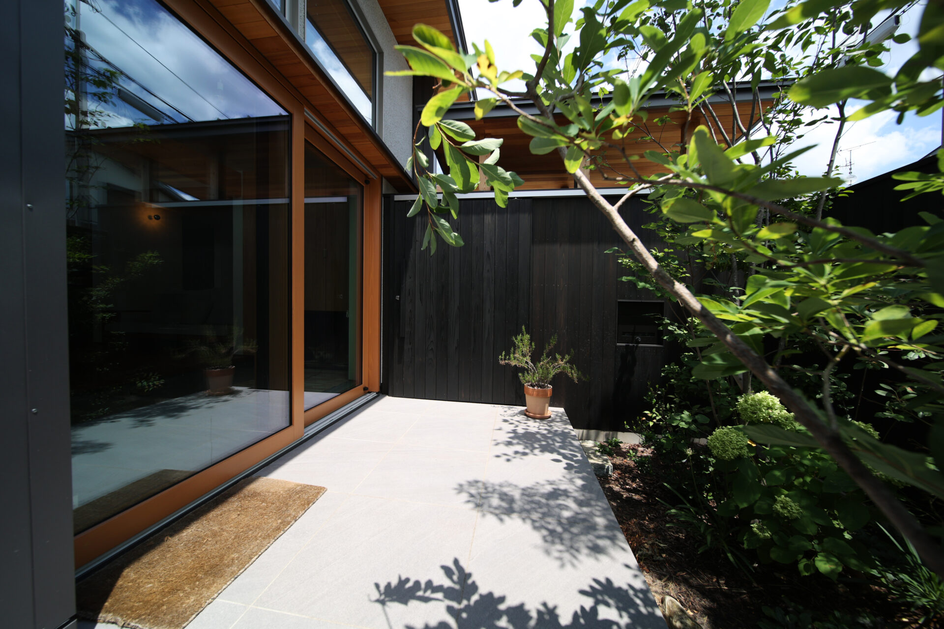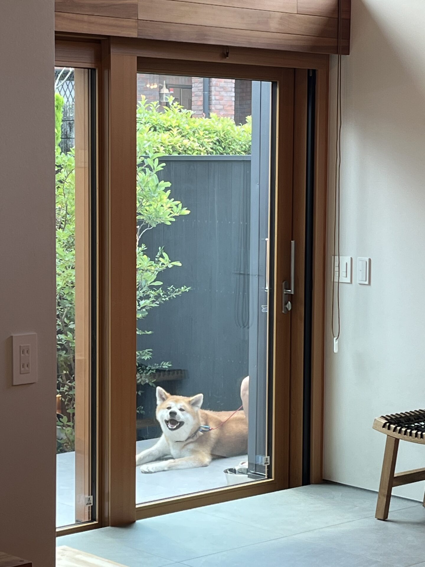 庭との程よい距離感、内と外がつながる場、中間領域となる土間玄関は、1日2回の散歩が必須の犬との暮らしに欠かせない場として使われています。室内から玄関を通して緑が見え季節の変化や時間のうつろいを感じ、暮らしに潤いをもたらしてくれます。