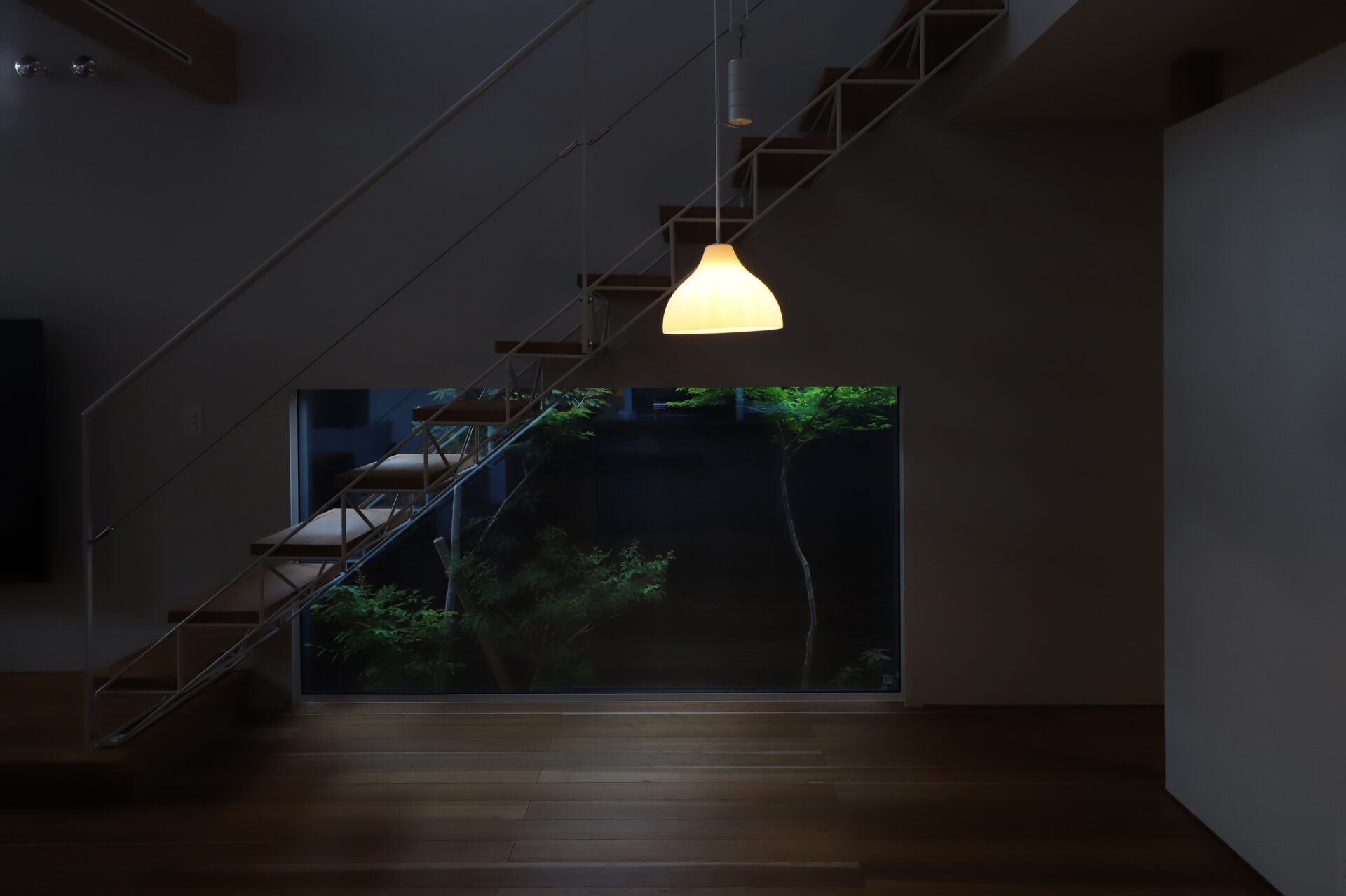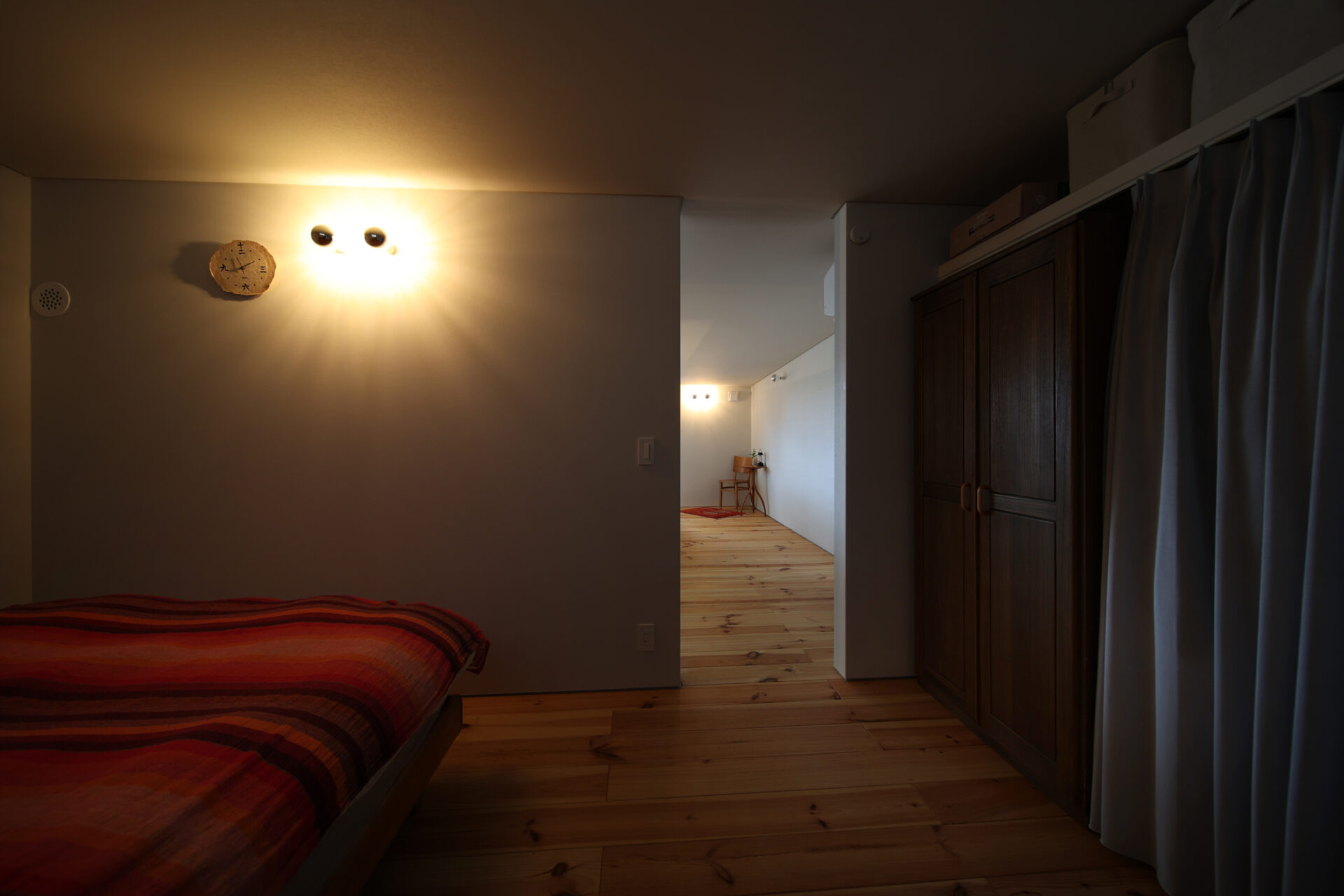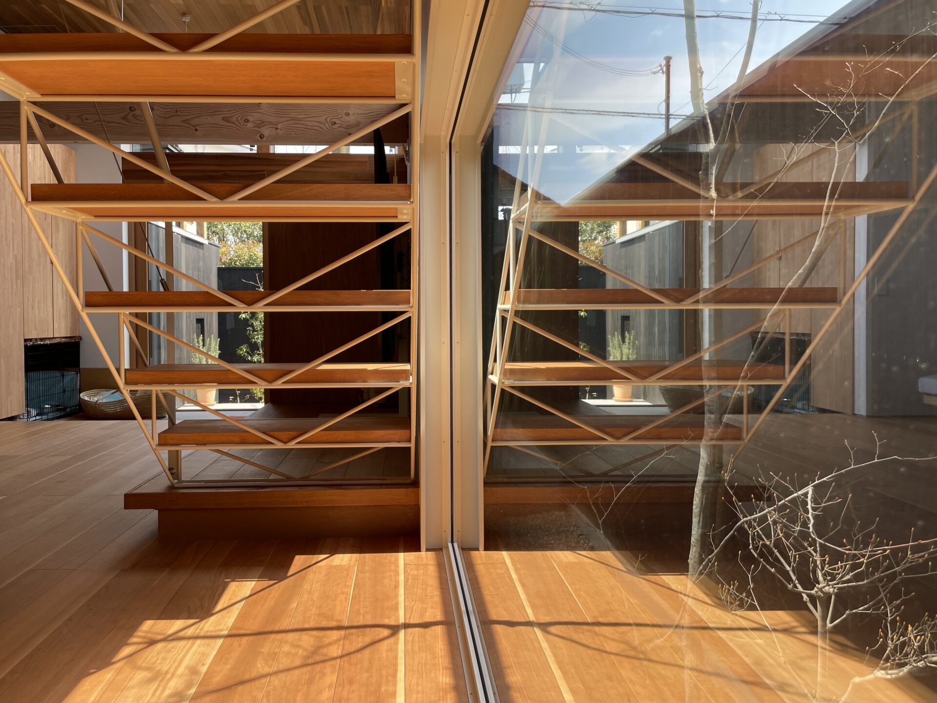 建物内に多様な居場所があることで、日の出から日没にかけての光の繊細な移ろいを感じ取ることができます。暮らしの中で過ごす居場所をLDKや寝室だけにとどまらず少し広げて考えています。玄関や階段も使い方の可能性を考えてみることで家全体を活用することにつながります。