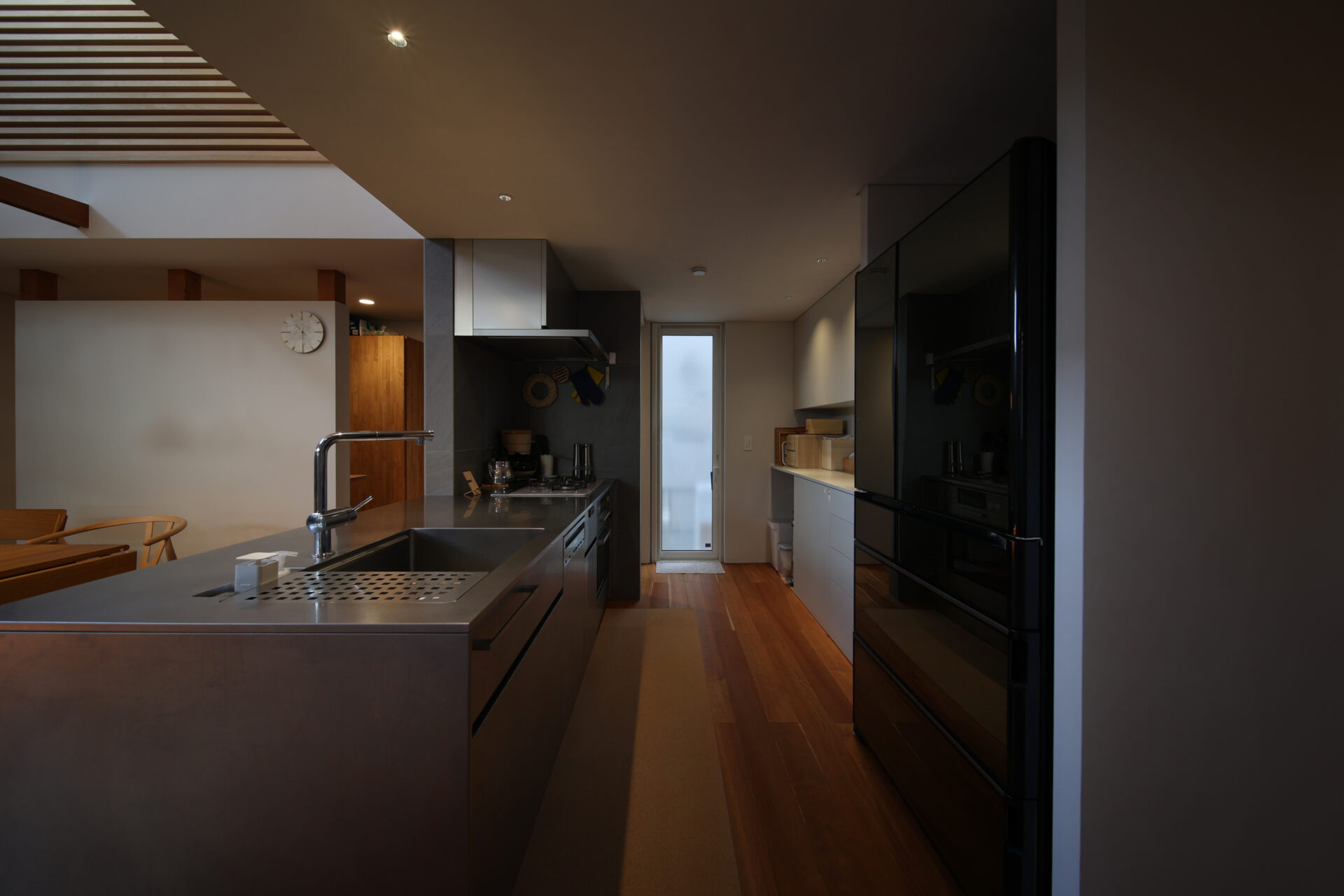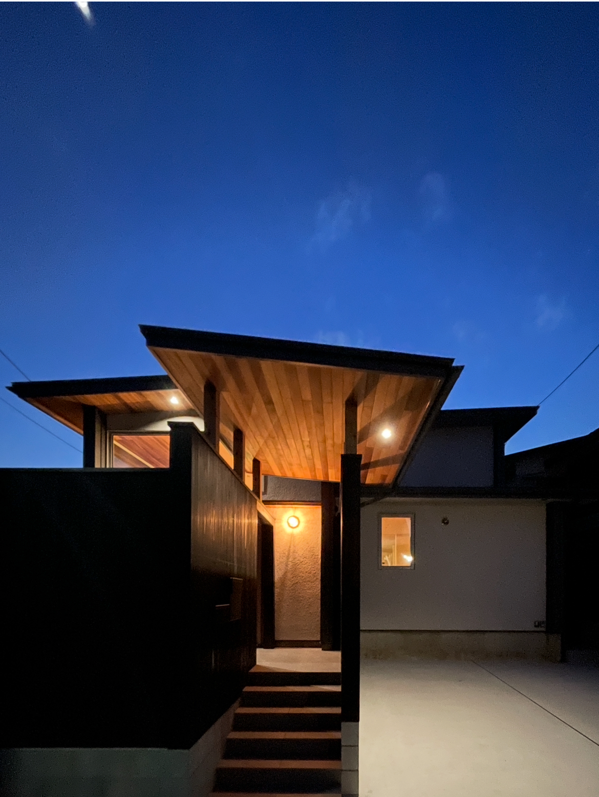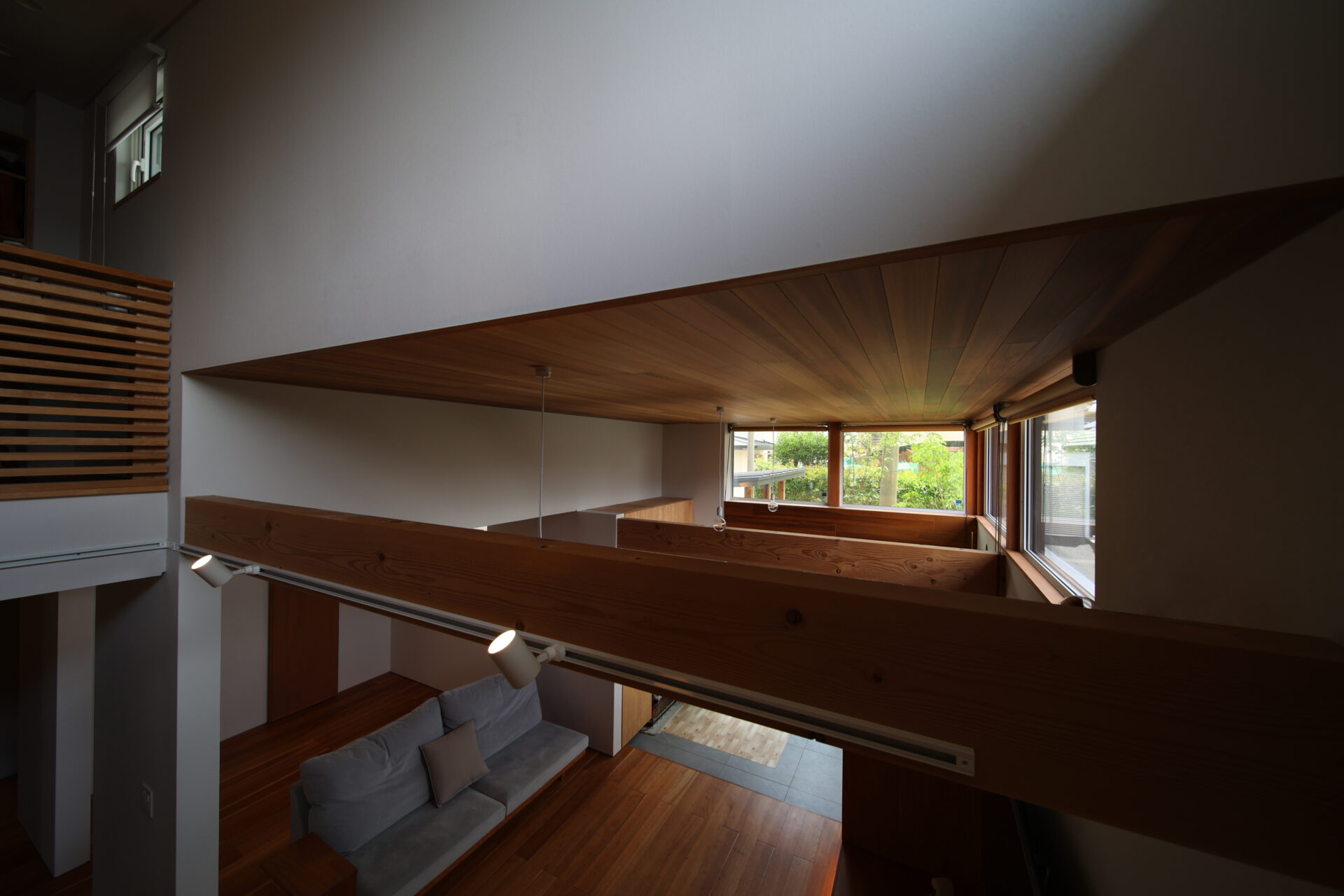 建物内に多様な居場所があることで、日の出から日没にかけての光の繊細な移ろいを感じ取ることができます。暮らしの中で過ごす居場所をLDKや寝室だけにとどまらず少し広げて考えています。玄関や階段も使い方の可能性を考えてみることで家全体を活用することにつながります。